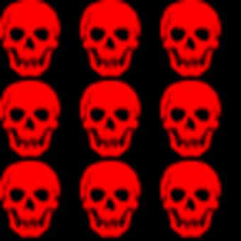 به عنوان مثال ، اگر فقط جمجمه های ساکن می خواستیم ، می توانیم با استفاده از الگوهای SVG ، جمجمه را نه بار تکرار کنیم. ابتدا با استفاده از مسیر جمجمه یک الگوی 24 × 24 تعریف می کنیم و سپس از این الگو به عنوان پر کننده یک مستطیل 72 72 72 استفاده می کنیم: