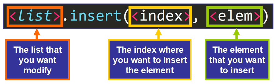 متد insert() برای قرار دادن عنصری در یک شاخص (موقعیت) خاص در لیست استفاده می شود.
