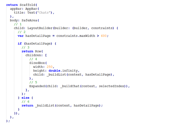 وش دیگر استفاده از LayoutBuilder است ، یک جایگزین مناسب برای MediaQuery که برای کنترل تغییرات جهت گیری استفاده شده است. این یک ابزارک سازنده است دقیقاً مانند یک "StreamBuilder" یا "FutureBuilder" ، همچنین BoxConstraints را می دهد که به شما امکان می دهد حداکثر و حداقل ویژگی های عرض و عرض صفحه را تعیین کنید.