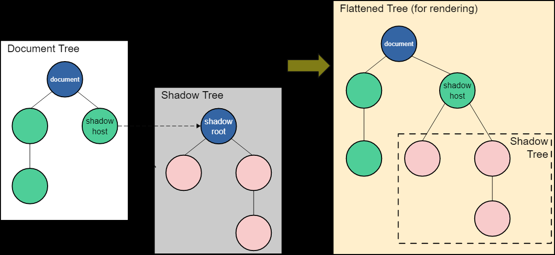 Shadow DOM اجازه می دهد تا درختان پنهان DOM به عناصر موجود در درخت معمولی DOM متصل شوند - این درخت سایه دار DOM با یک ریشه سایه شروع می شود ، در زیر آن می توان به هر عنصر دیگری که می خواهید متصل شود ، به همان روشی که DOM معمولی است.