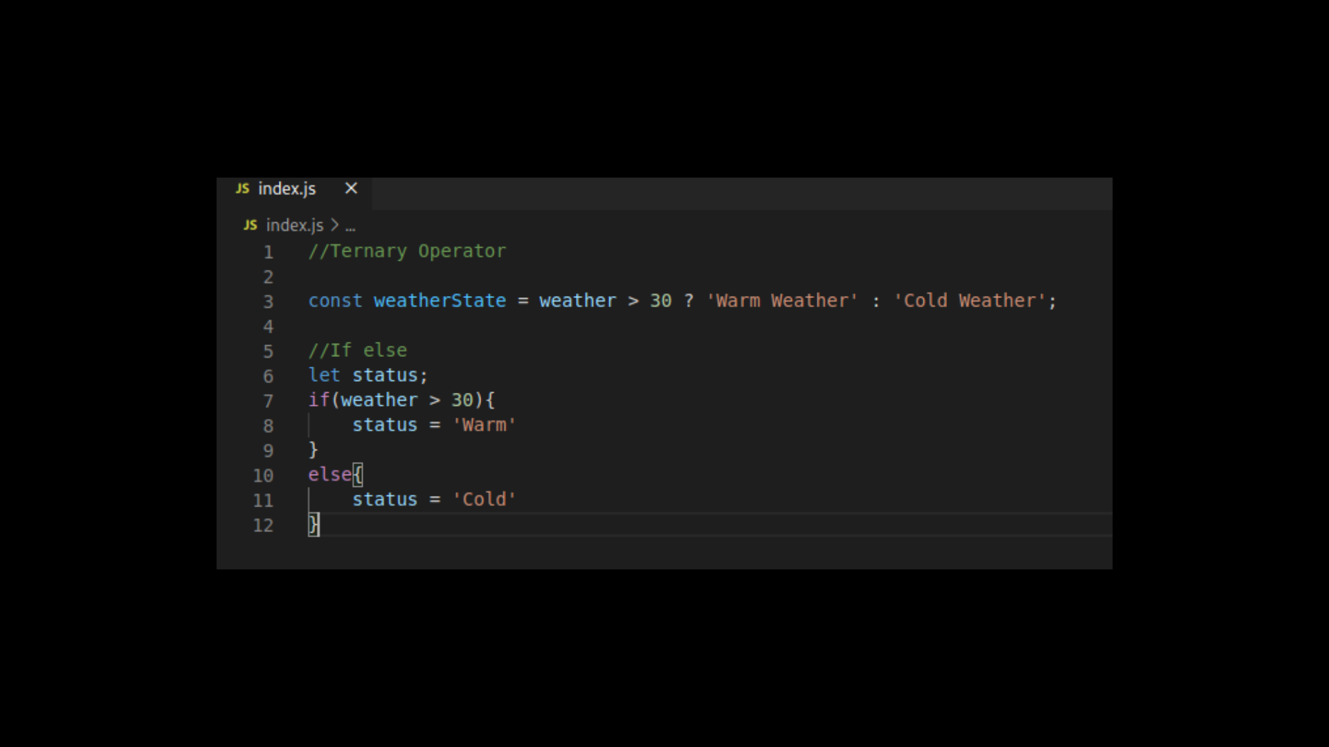 با شروع ؟ ، ما یک شرط را در سمت چپ و یک مقدار را در سمت راست اضافه می کنیم تا در صورت صحت شرط برگردد. سپس یک کولون اضافه می کنیم (:) و به دنبال آن یک مقدار برای بازگشت در صورت غلط بودن شرط.